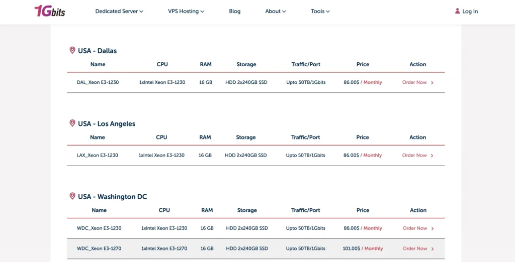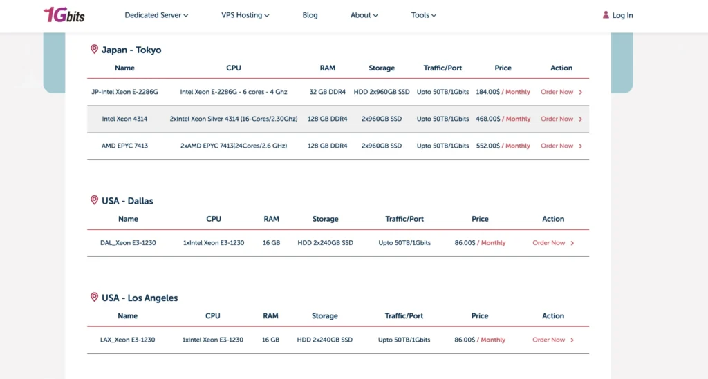 1Gbits stands out as a leading provider of dedicated server hosting, offering more than 50 data center locations worldwide, from the USA to Asia.