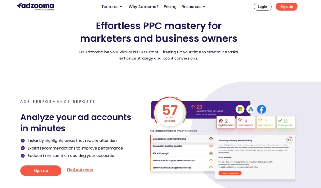 Adzooma is perfect for PPC professionals who need advanced insights and automation tools.