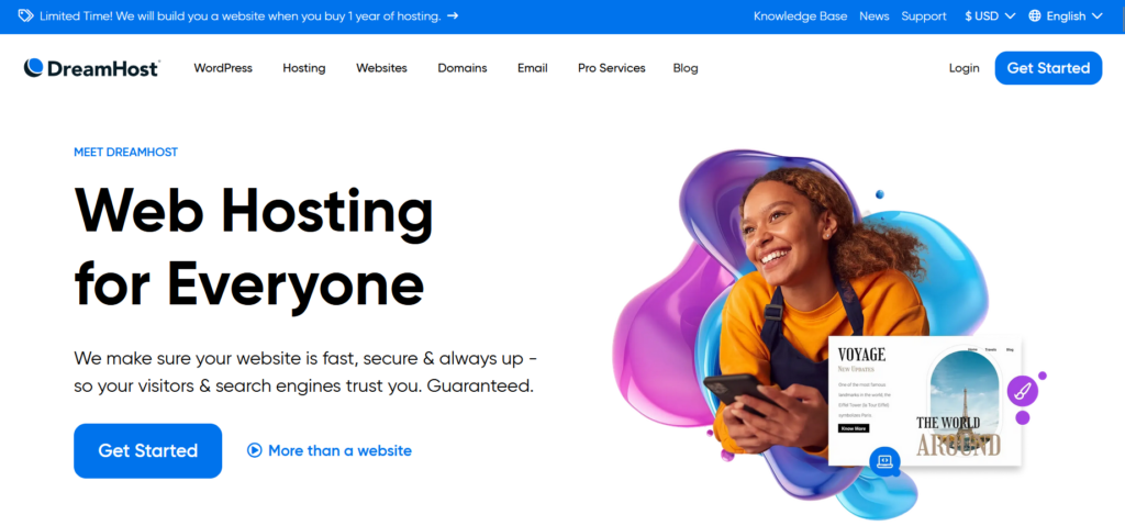Where DreamHost shines is its custom dashboard, automatic WordPress updates, and easy upgrade to VPS hosting if needed.