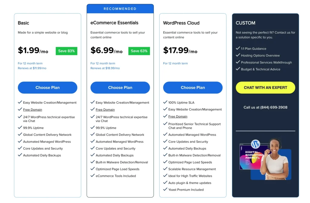 BlueHost hosting plans offer excellent value for individuals, small businesses, and growing eCommerce sites. With robust features, strong uptime, and expert support, they strike a balance between affordability and functionality, making them ideal for both beginners and high-traffic site owners seeking managed WordPress solutions.