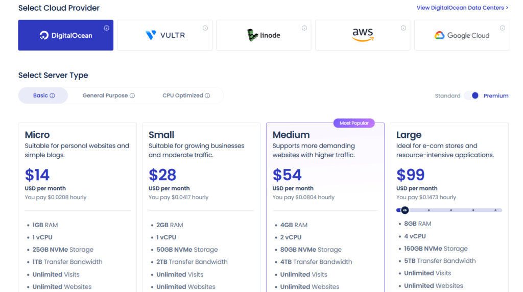 Cloudways allows you to choose from five major cloud providers, including DigitalOcean, AWS, Google Cloud, Linode, and Vultr, providing flexibility to select the best infrastructure for your specific needs.