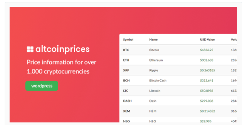For displaying the list of the cryptocurrencies on your WordPress website and here you don’t have to do it manually. Simply avoid hard work and just take the benefit of a simple to use the cryptocurrencies plugins like Altcoin Prices. It also provides the price information id USD along with the volume and market cap for more than the thousands of coins. Here the setup is straightforward for everyone and anyone can simply add it right to their sites. It will automatically create a new WordPress page with all of the in-depth lists of the coins. You can also expand your current crypto website right with a simple to browse list.