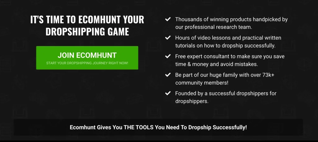 Whether you’re just starting your e-commerce journey or looking to scale your existing business, Ecomhunt is here to help.