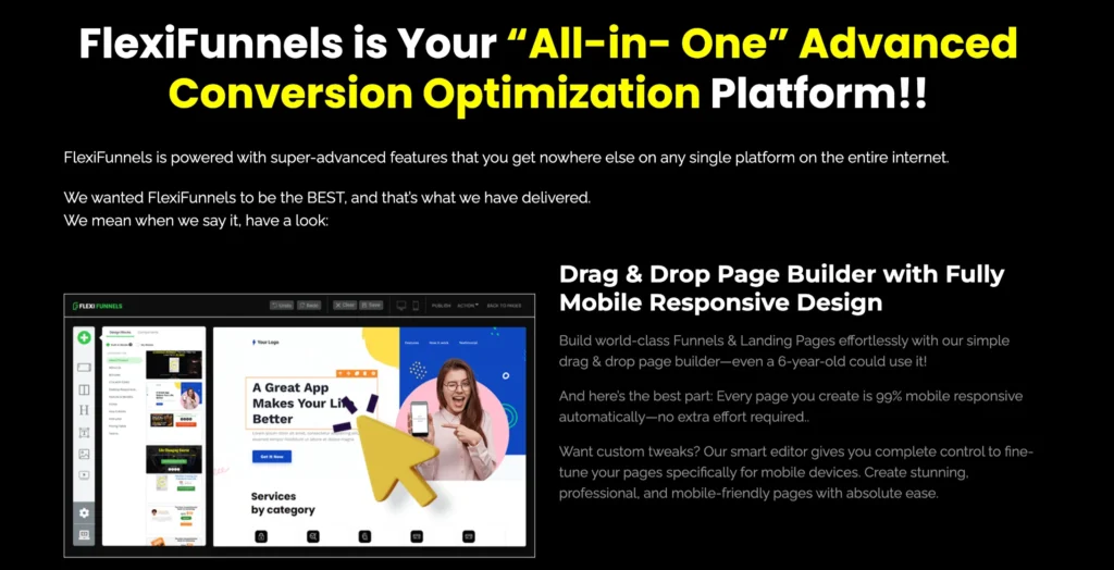 Flexifunnels offers fully mobile-responsive, codeless pages for its customers, which is undoubtedly a significant advantage.