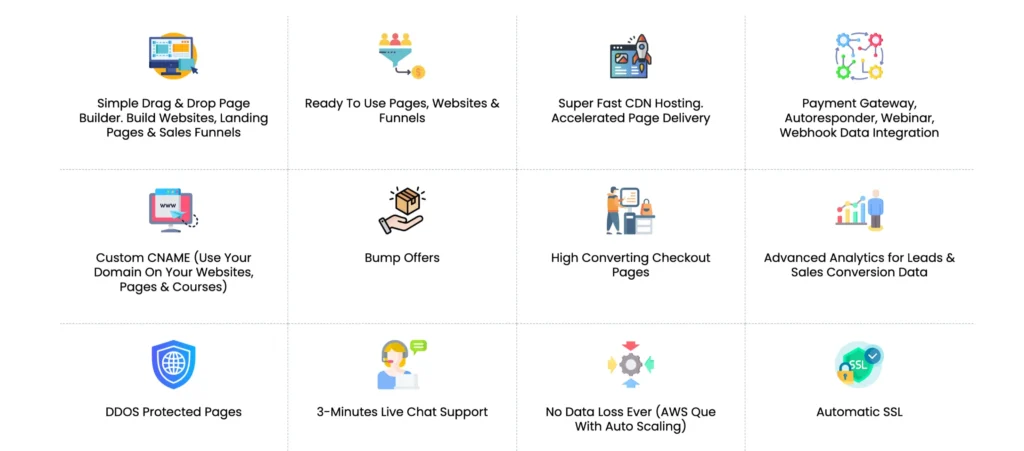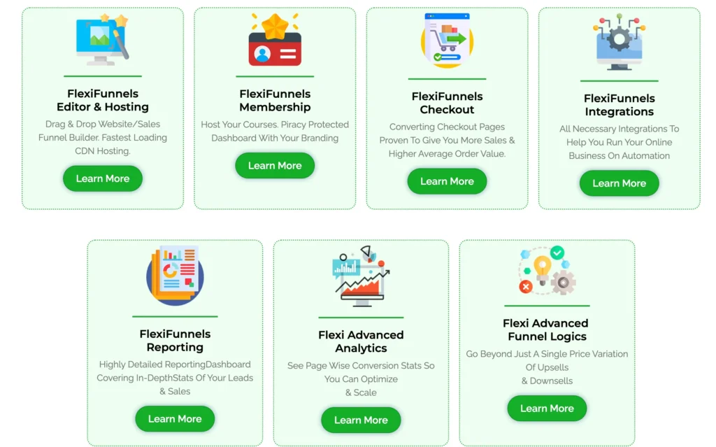 FlexiFunnels offers numerous features that enable users to generate higher revenue than usual. These features include highly optimized checkout pages, bump offers, course membership areas, and superior hosting.