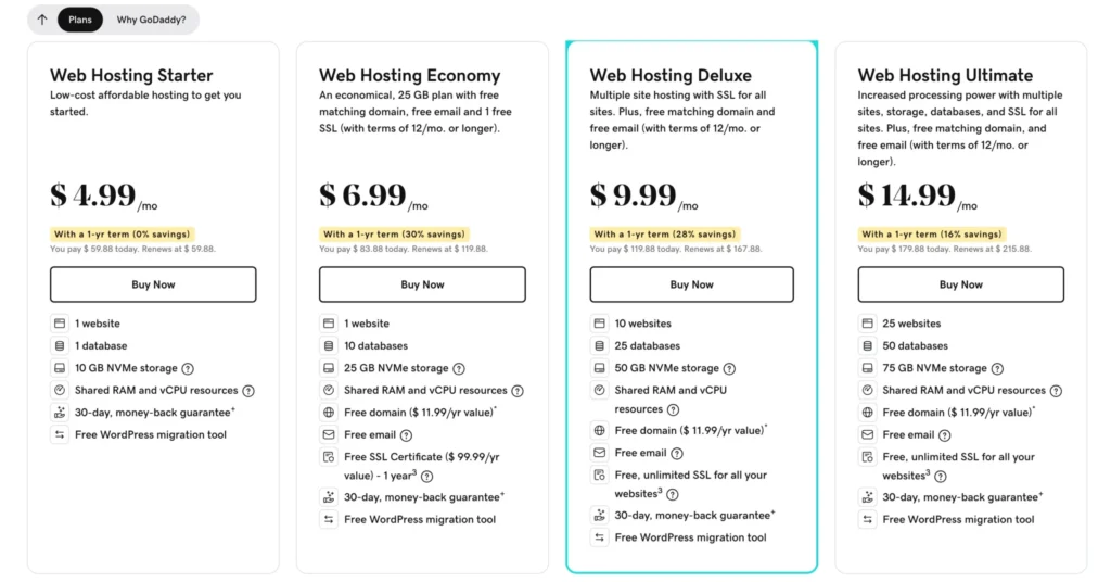 GoDaddy Hosting: Price Plans