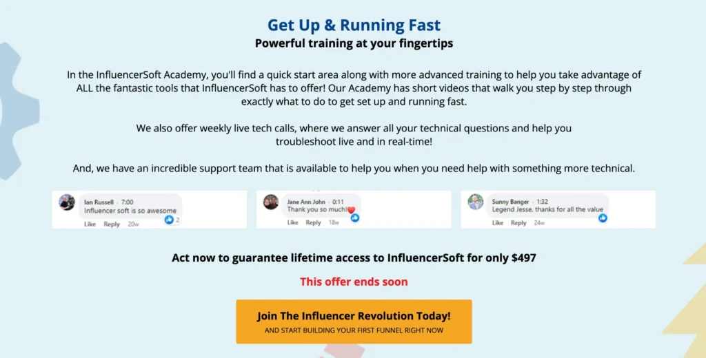 You won’t have to go back and forth to YouTube seeking instructions because everything is nicely laid out for you. Furthermore, the InfluencerSoft (IS) team hosts weekly online coaching sessions, which alone is worth the software’s cost.