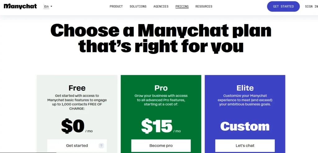 | Free | $0 | Up to 1,000 | Basic automation, 10 tags, 1 team member, Instagram, Messenger, WhatsApp, TikTok (Beta) |