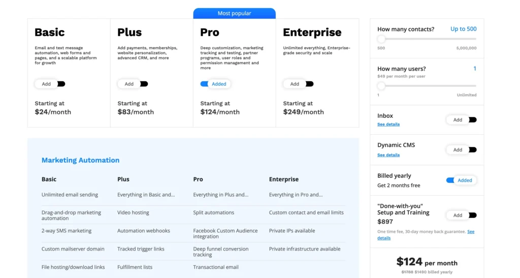 Along with that, it also offers tools for email marketing, lead scoring, lead nurturing, affiliate management, payments, event management, lead generation, and more.