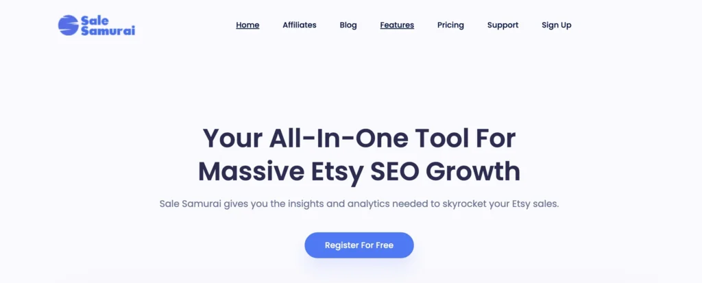 Sale Samurai focuses on providing keyword optimization and market analysis tools specifically for Etsy sellers.