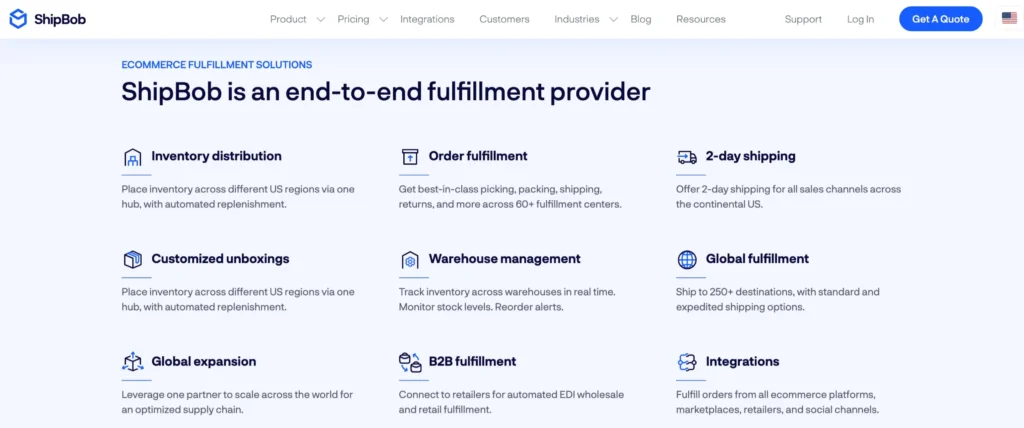 ShipBob is a reliable third-party logistics (3PL) provider, offering fast order fulfillment, real-time inventory tracking, and seamless integration with popular e-commerce platforms. It’s especially useful for small to mid-sized businesses looking for scalable fulfillment solutions.