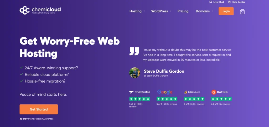 Leveraging cloud technology, ChemiCloud delivers enhanced performance, scalability, and reliability. Their 24/7 customer support is available via live chat, email, and phone to provide assistance whenever needed.