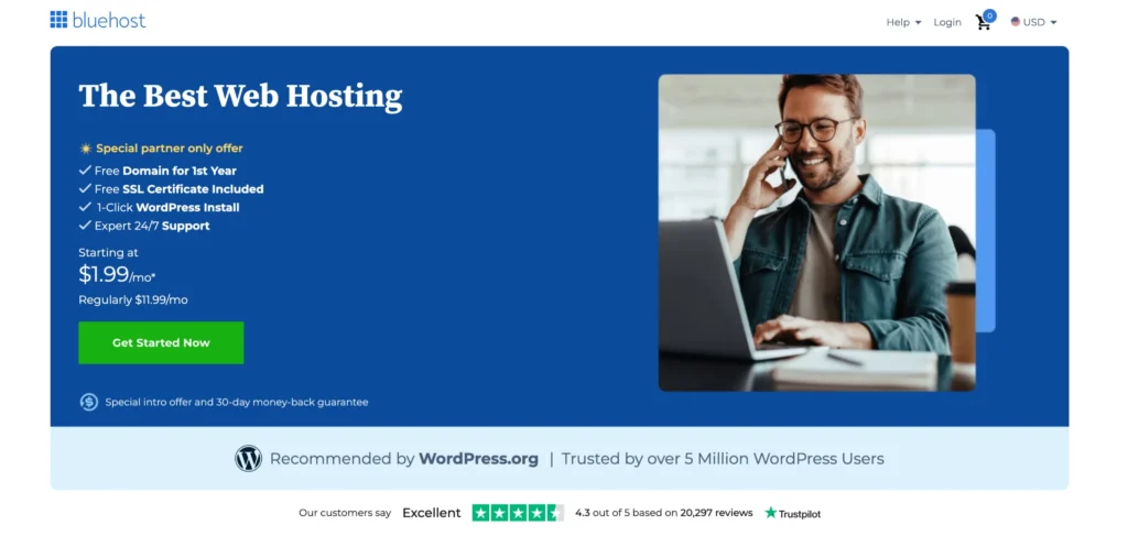 It is an affordable and reliable choice for entrepreneurs, service providers, bloggers, and other website owners. Bluehost has years of experience in the web hosting industry and is known for providing top-notch web services at reasonable prices.