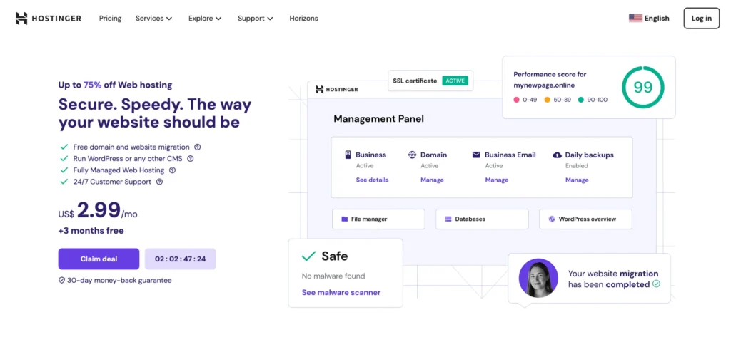 Their custom control panel, hPanel, is designed for ease of use, making website management straightforward, even for beginners.
