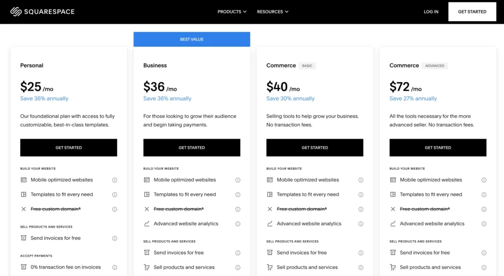 - Squarespace Pricing Plans