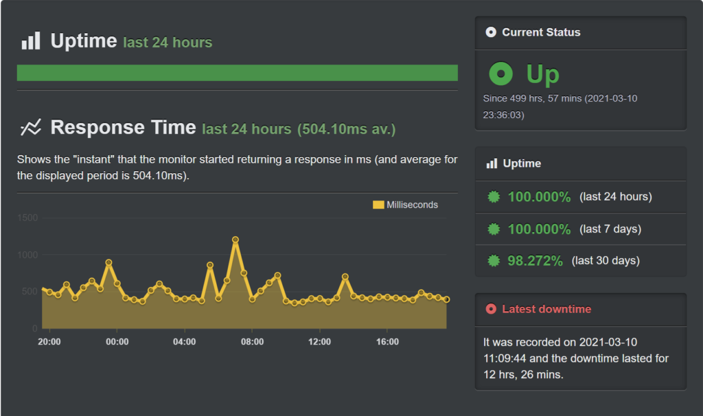 Although TMDHosting promises 99.999 percent uptime for its hosting service, independent testing has shown that it is closer to 99.46 percent. This could result in unavailable websites for a few hours per month for a year.