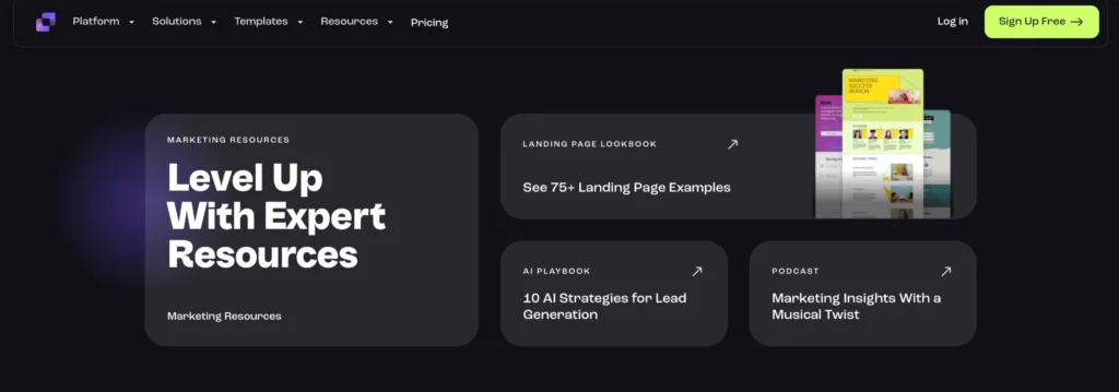 To build landing pages with a high conversion rate, Unbounce offers a wide range of options. It is quite user-friendly for beginners and extremely straightforward to use. It is a landing page platform that is definitely worth looking at, especially for SaaS companies, because of the features that are provided, such as sticky bars and popups.