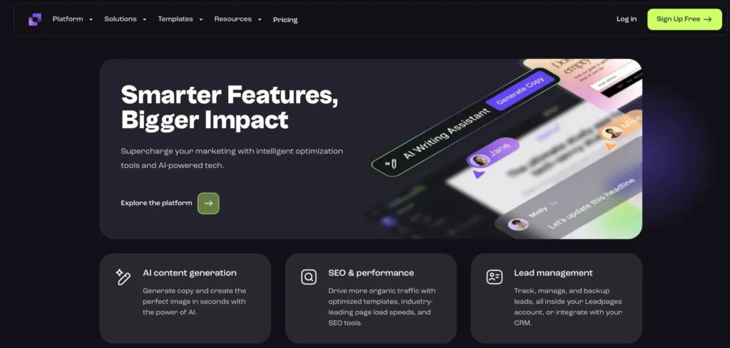 Leadpages, on the other hand, is known for being user-friendly and has a lot of pre-designed templates, making it a good choice for beginners.
