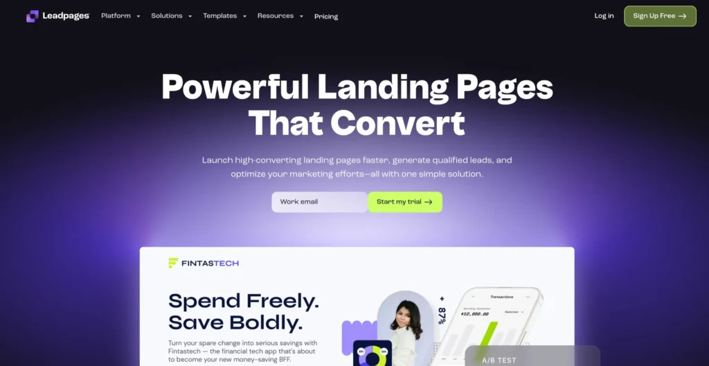 In Leadpages, an A/B split testing feature is available, like Unbounce, which gives you a better campaign.