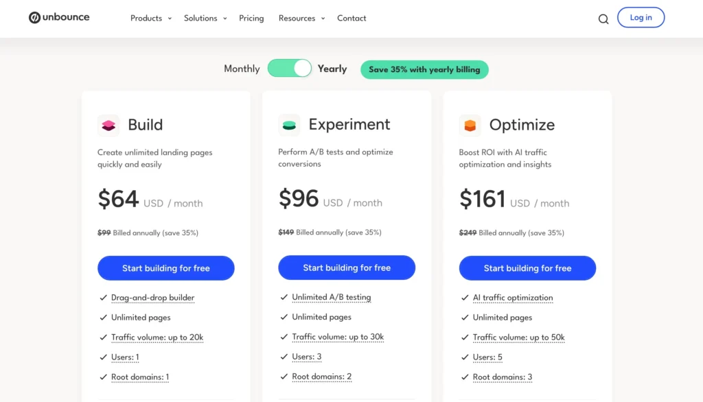 Unbounce’s offering may appeal to people more interested in using artificial intelligence-driven Smart Traffic software to maximize conversions.