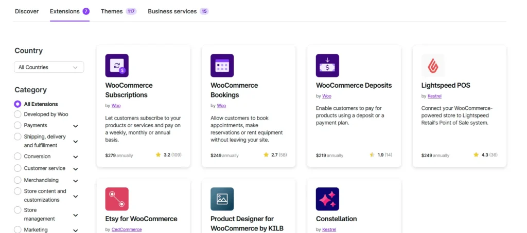 - WooCommerce Extensions: Woocommerce supports a wide range of plugins to add extra functionalities, including SEO tools, advanced shipping options, and payment gateways.