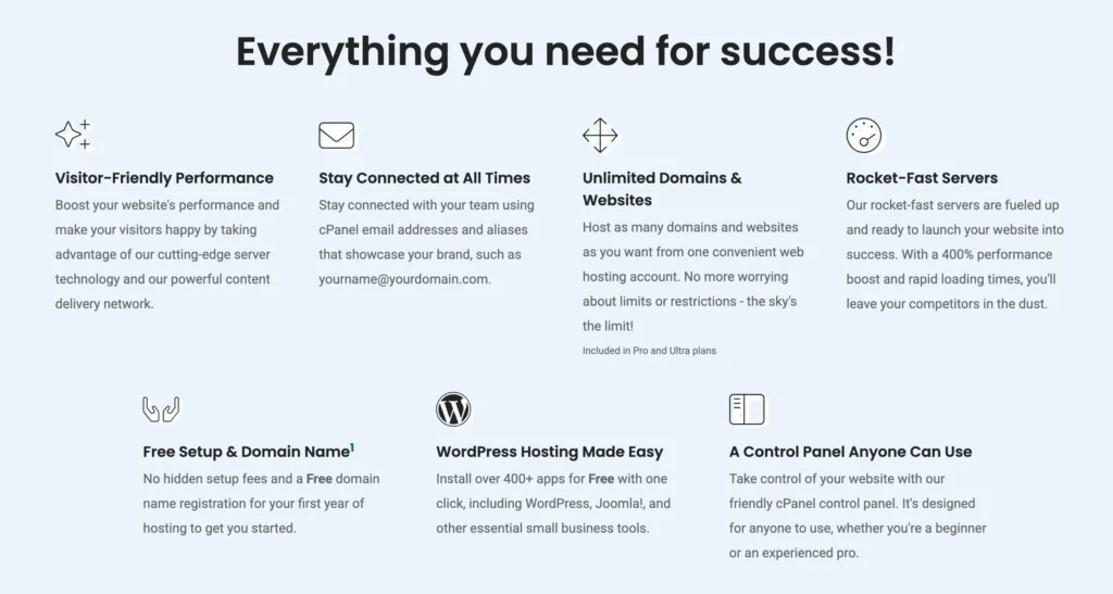 - Affordability: These plans start at a very competitive price, providing great value for individuals or small businesses with basic hosting needs.